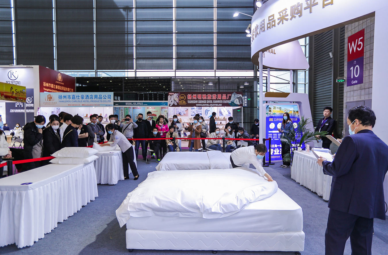 Шанхайская международная выставка дизайна и поставок для гостиничного бизнеса — Соревнование по уборке номеров в отелях — Шанхайская международная выставка дизайна и поставок для гостиничного бизнеса. Соревнование проводится для горничных отелей, которые соревнуются в застилании кроватей, состоящем из простыней, одеял и подушек, демонстрируя свое мастерство в обслуживании. Это помогает персоналу отеля обмениваться навыками уборки и способствует развитию рынка гостиничных принадлежностей.